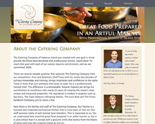 The website features a simple two-column layout with large header photos and tasteful typography. The backend uses WordPress to make content easy to update and manage. The result is a clean design with a focus on typography that helps to tell the story of the best catering Hatteras Island has to offer.